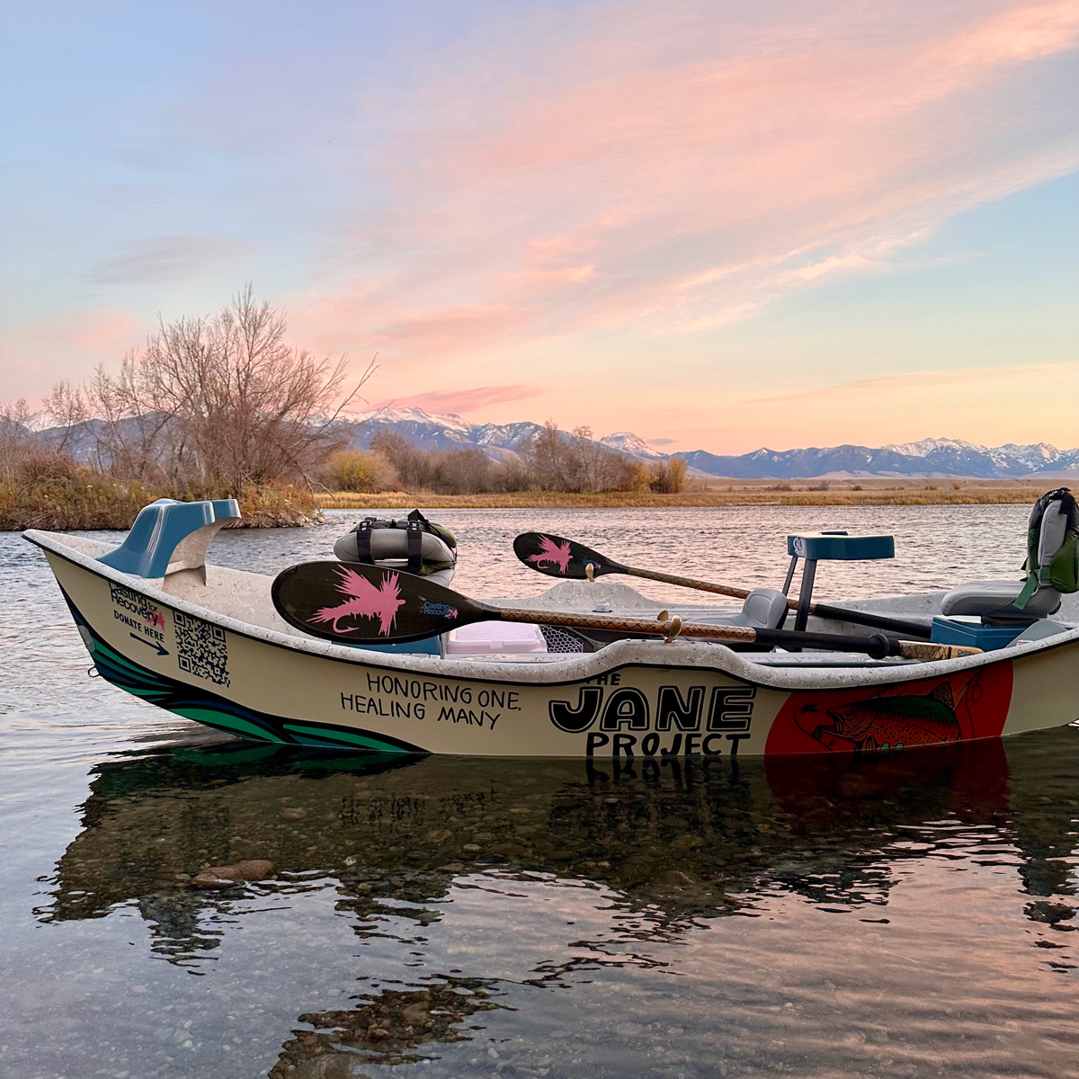 Your Founders Circle experience includes a day of fly fishing and a float on The Jane along the Gallatin, Madison, or Yellowstone Rivers with Kara Tripp of Damsel Fly Fishing, star and guide of The Jane Project film. During your float, you’ll have the opportunity to choose where your tribute will live on the boat. You’ll also receive two 16 oz YETI Jane Project tumblers, a hat of your choice, and your tribute will be featured on the virtual Jane Wall and The Jane’s Instagram page — a lasting celebration of the healing power of water, connection, and love.
