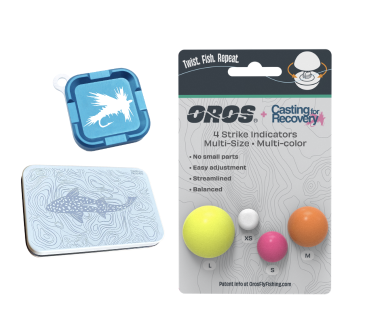 Limited-edition Oros x Casting for Recovery strike indicator set perfect for adapting to different water types, fly weights, and fishing conditions.